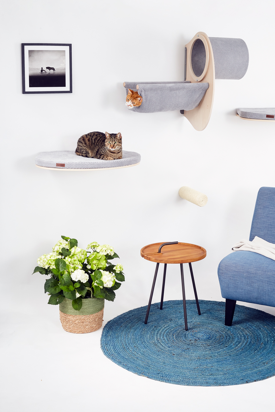Durch die erhöhte Position fühlt sich Ihre Katze sicher, behaglich und vor Irritationen geschützt, vor allem, wenn sie lieber schlafen als mit anderen Haustieren oder Kindern spielen möchte. Wenn Ihre Katze eher Lust darauf hat, allein zu sein, ist dies der perfekte Platz zum Entspannen. Bringen Sie es in der Nähe anderer Möbel an, so dass sie nach Herzenslust klettern kann.